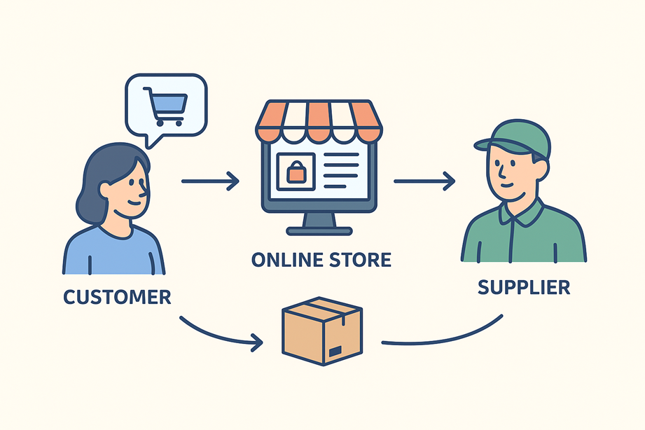 Dropshipping is an eCommerce business model where you don’t keep the products in stock. Instead, you partner with suppliers who handle inventory, packaging, and shipping. When a customer places an order on your website, you forward that order to the supplier, and they deliver it directly to the customer.